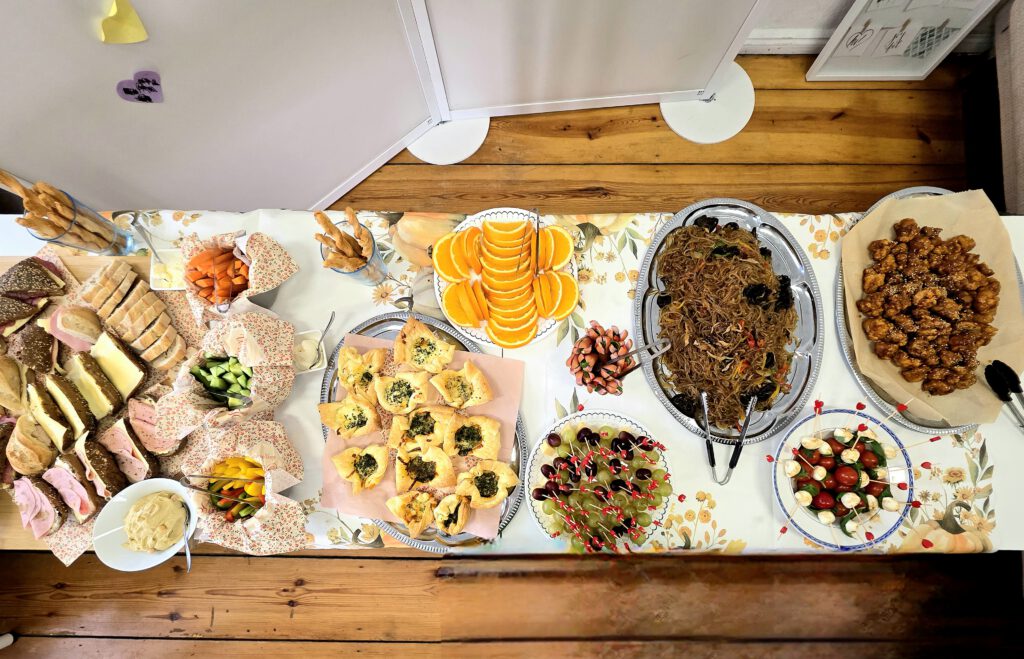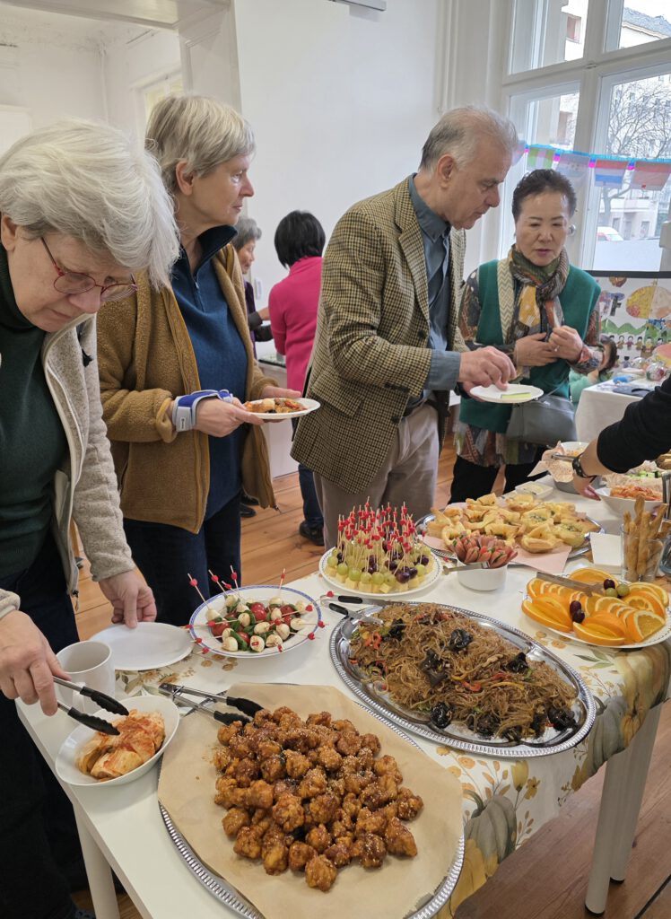 11시부터 진행된 오전 브런치 시간에는 근방에 오래동안 살고 있는 이웃들이 10여명 이상 방문하였습니다. 독일 뿐 아니라 다양한 이주 배경을 가진 이웃들은 평소 해로에 대해 궁금한 점이나 한국 문화에 대한 호기심 등 다양한 주제로 이야기를 나누었습니다. 브런치 메뉴로는 독일식사 외에도 잡채, 김치, 불고기 등 한국 음식들이 마련되어 있어 풍성함을 더했습니다.